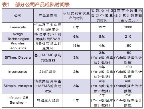 新興MEMS的特點(diǎn)是,達(dá)到成熟的速度較以往更快(表1)。