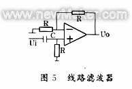 通常,經(jīng)典濾波器用得最多。濾波電路可以由無源元件R、L、C組成,如圖5所示的線路濾波器;也可以包含有源元件(如圖6所示),它的優(yōu)點主要是具有一定的信號放大和帶負載能力。濾波電路從功能上又可分為四類:低通(LP)、高通(HP)、帶通(BP)、帶阻(BS)濾波器。每一種又有模擬(AF)與數(shù)字(DF)濾波器兩種形式。由于傳感器信號一般為緩慢變化的信號,故選用低通濾波器抑止高頻噪聲信號最多。通常如巴特沃斯濾波器、切比雪夫濾波器、橢圓濾波器等。常用低通濾波電路如圖6所示。