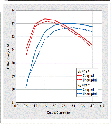 圖 4 耦合和非耦合電感均獲得了較好的效率