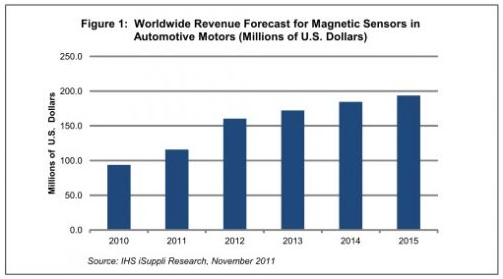 據(jù)IHS iSuppli公司的磁傳感器專題報(bào)告,由于能夠改善汽車安全性、便利性和燃油效率,硅磁傳感器在汽車電機(jī)中的應(yīng)用將快速增長(zhǎng),該市場(chǎng)的銷售額將在2012年增長(zhǎng)近40%。