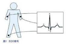 心電圖機(jī)(ECG)可實時記錄病人的心跳活動。心跳信號是通過三個連接到病人身體的電極測量出來。圖1所示為其中一個電極輸出的ECG信號,圖中包含有五個測量點,分別是Q、P、R、S、和T,這些測量點可用來診斷病人患上心臟病的可能性?! ?br />