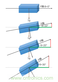 圖2:重力加速度在檢測軸上的分量