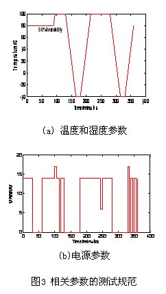 根據(jù)PCM各種工況下的極限環(huán)境,確定了溫度、濕度、電源電壓等重要參數(shù),建立了一套周期為6小時的測試規(guī)范,具體如圖3所示,并通過了利用DSPACE快速開發(fā)平臺和NI虛擬儀器平臺建立的耐久性測試實驗平臺的檢驗。
